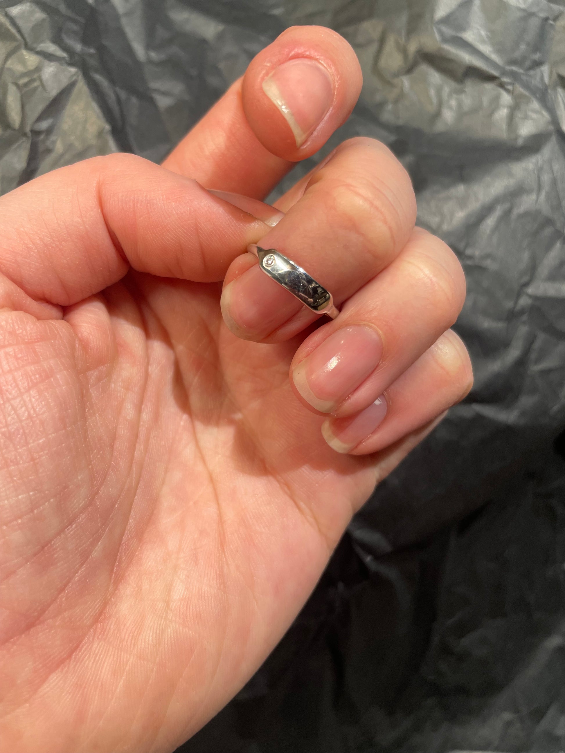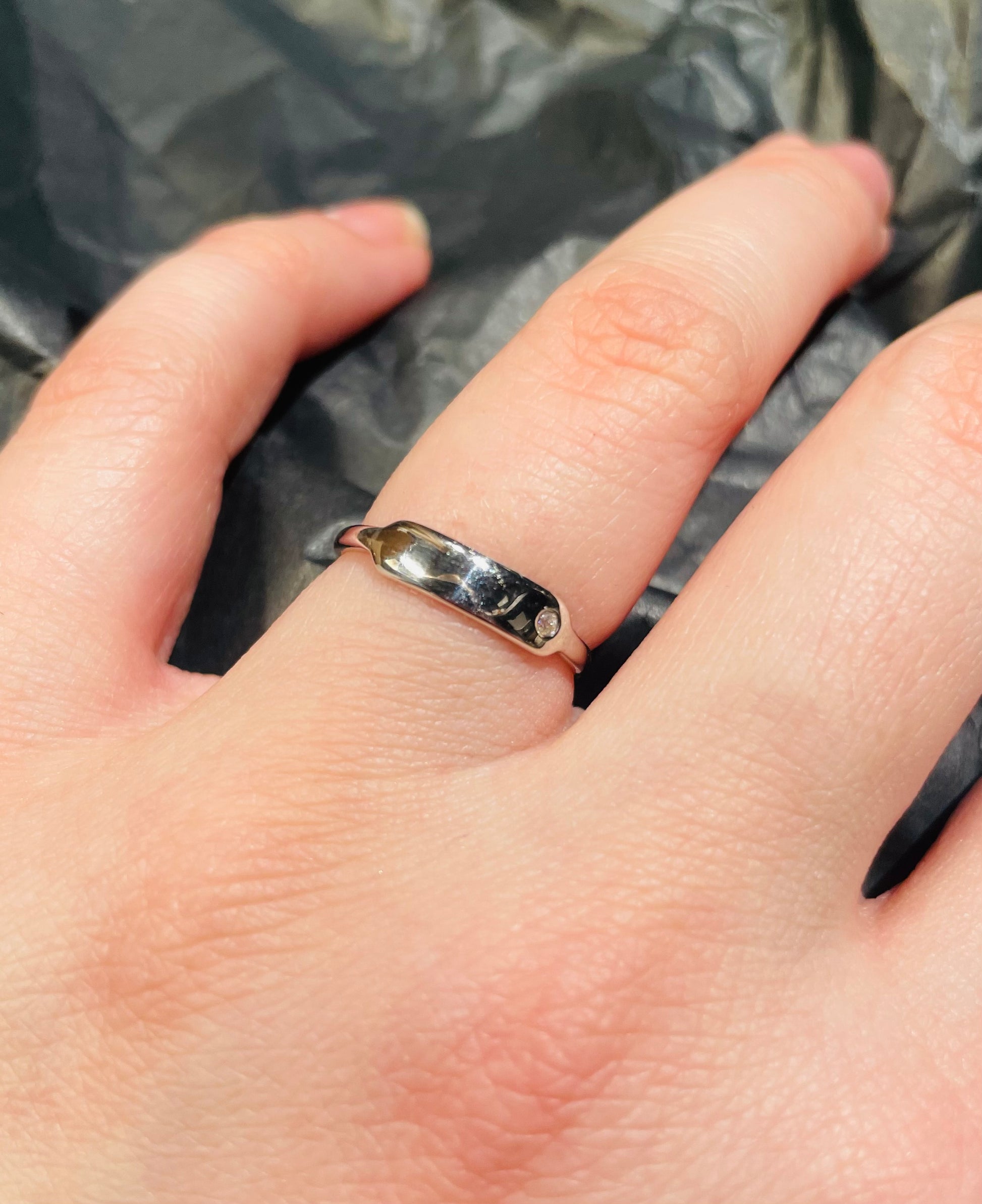 Flat silver signet ring with a cubic zirconia stone. Size 51